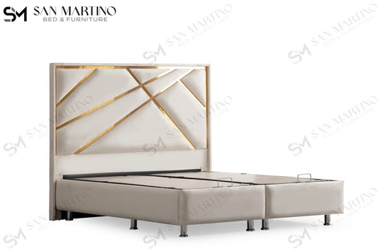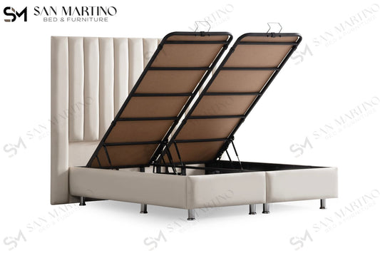 Lit double coffre 2 places en velours avec tête de lit – NATURA BEIGE