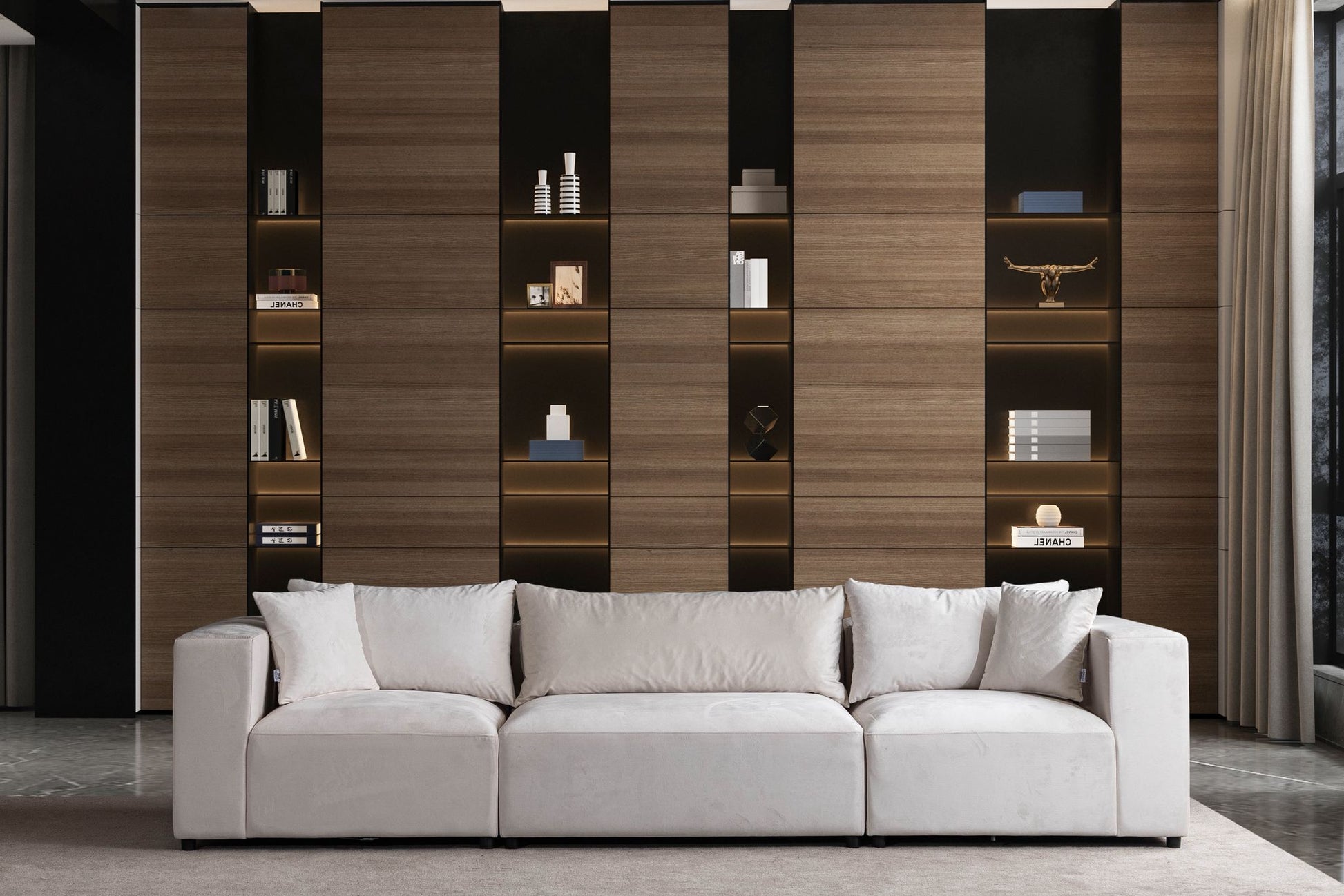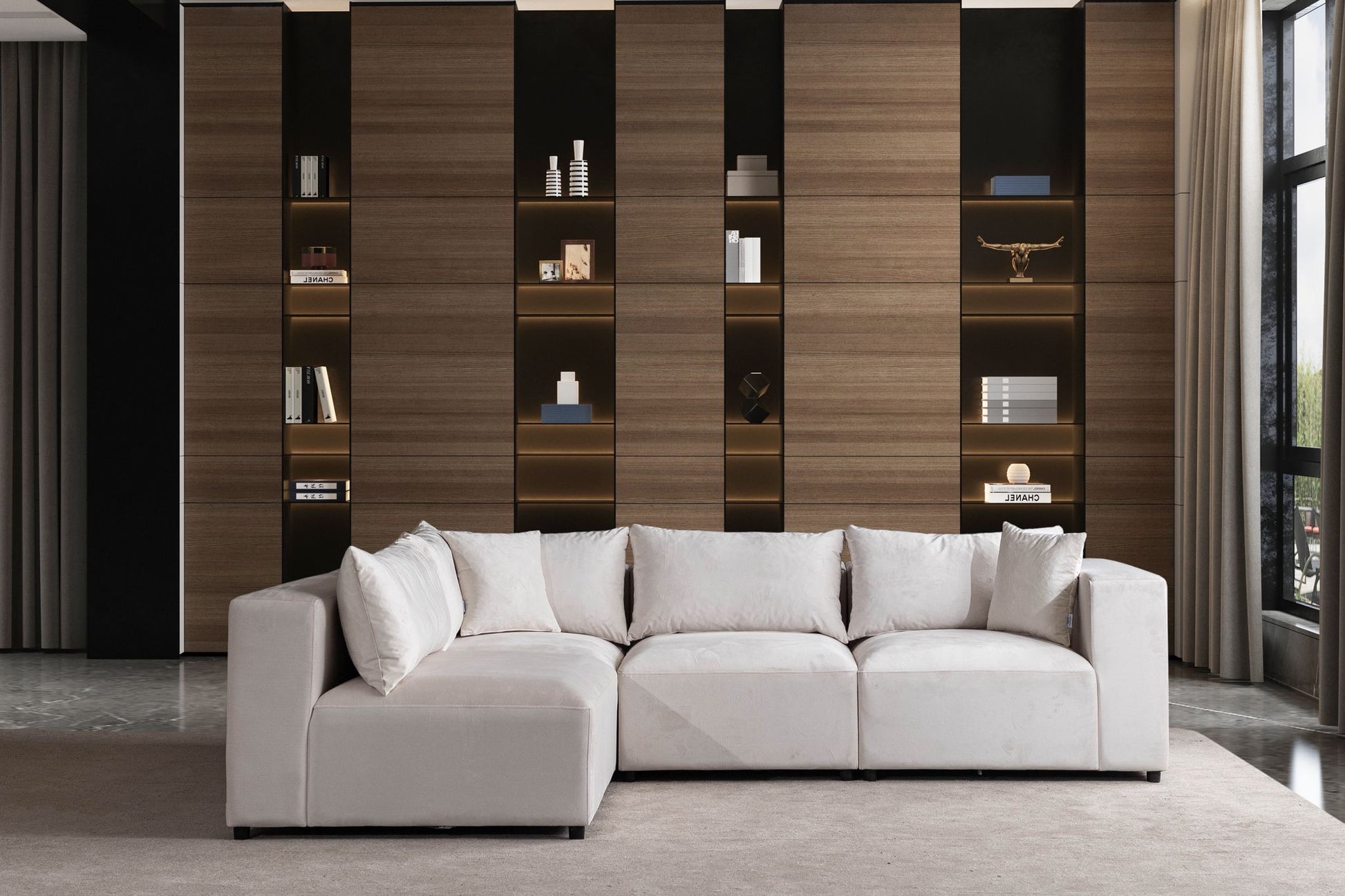 Découvrez notre petite pépite, le canapé Azra modulable en velours Ultra doux blanc cassé