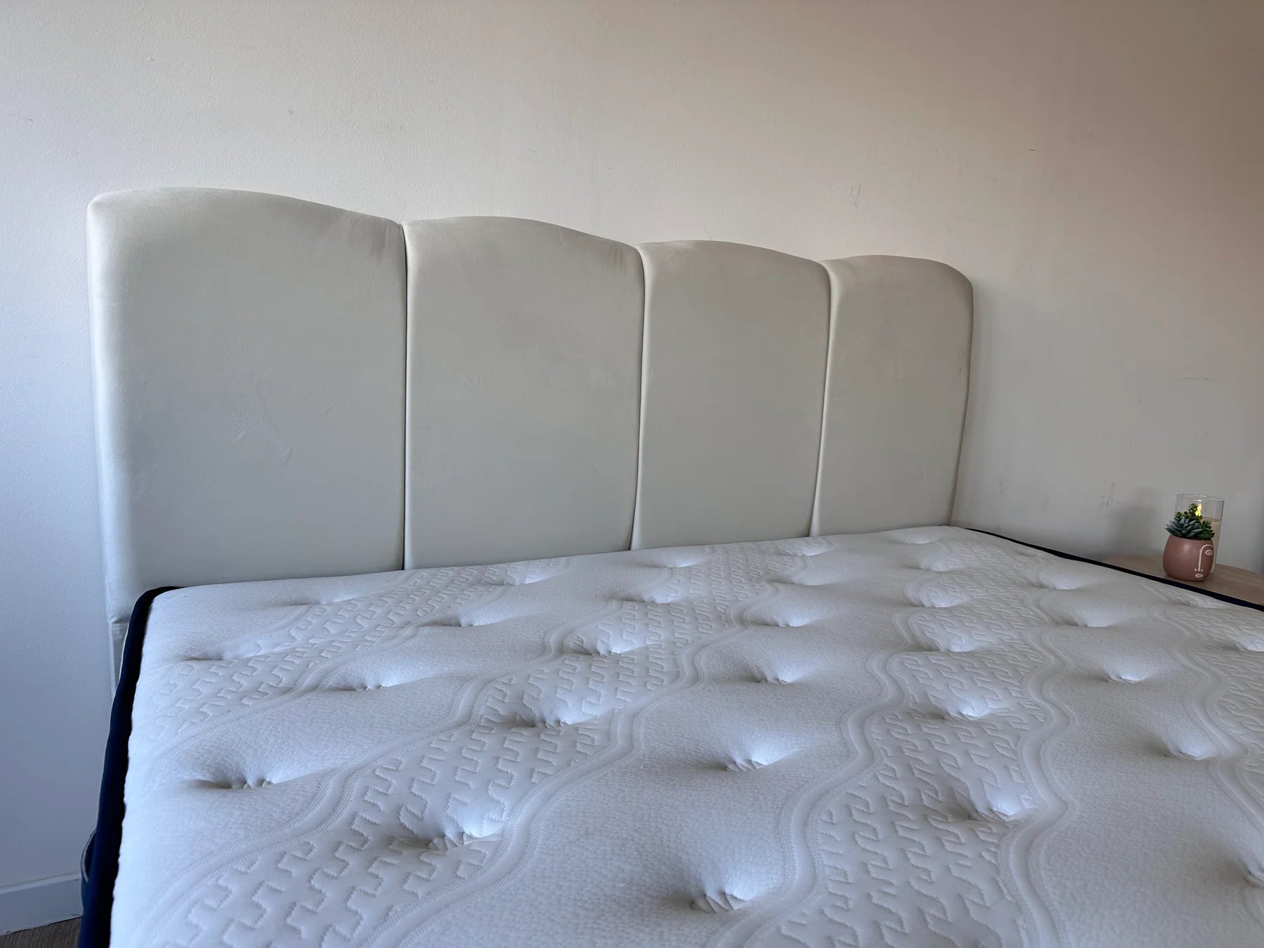 - Tissu en velours blanc cassé : doux au toucher et élégant.